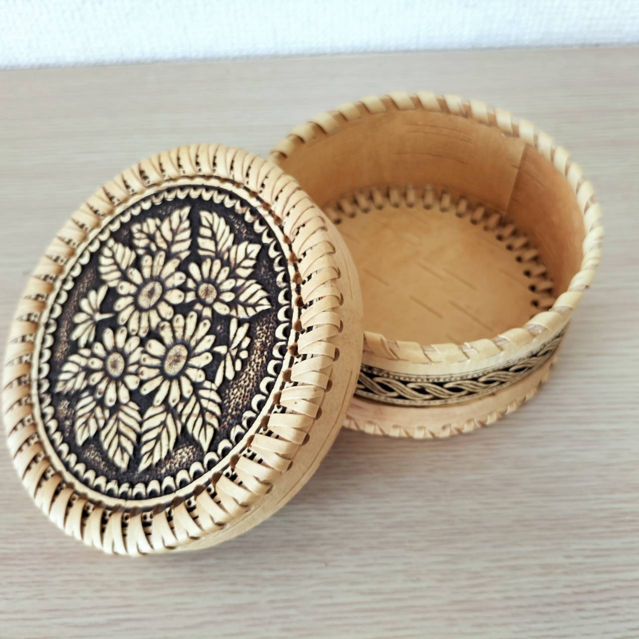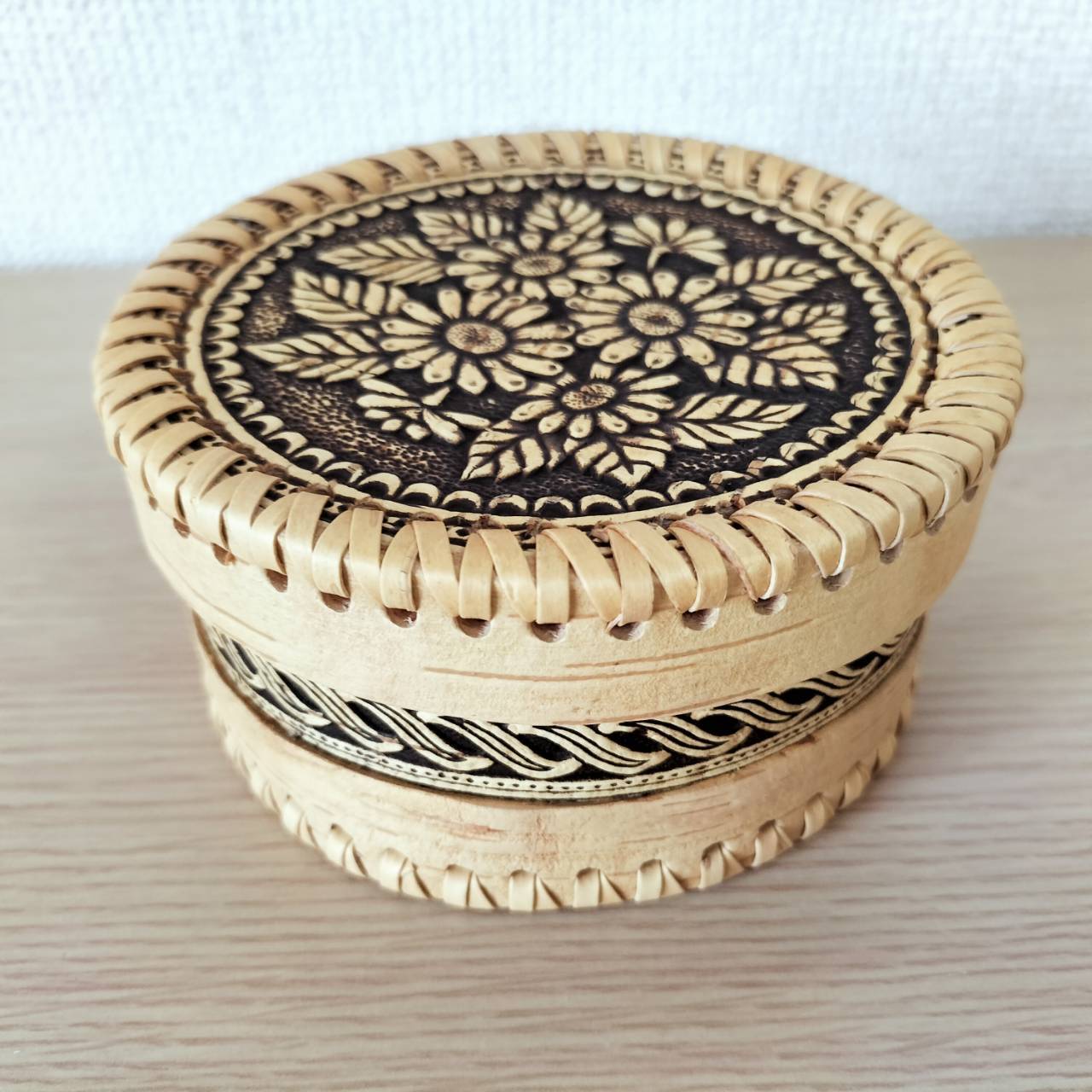 ロシア・北欧の小物入れ、ベレスタです。白樺の真皮で作られている白樺細工です。ベレスタ職人のハンドメイド作品です。