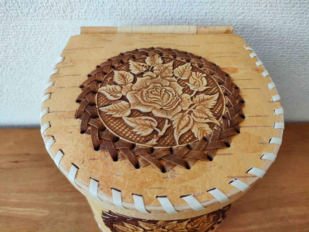 ロシア・北欧の小物入れ、ベレスタです。白樺の真皮で作られている白樺細工です。