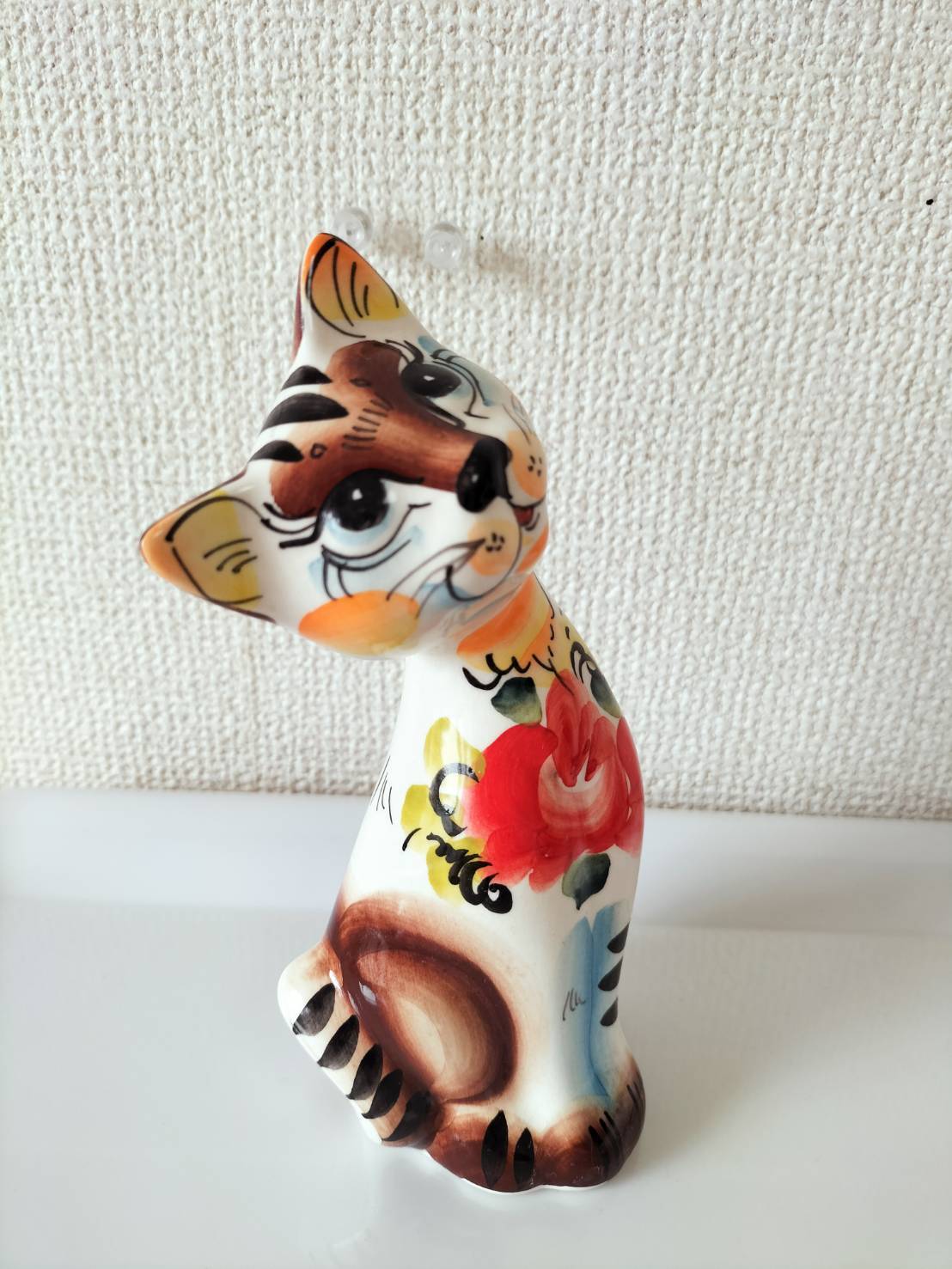 ※貫入あり【GZ396】北欧ロシア雑貨 動物陶器 グジェリ焼 ねこ(大)