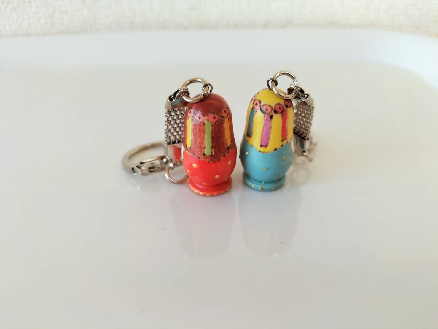 ロシアで有名なリュボーフィさんという作家のマトリョーシカのキーホルダーです。2個セット、バラ売り不可です。