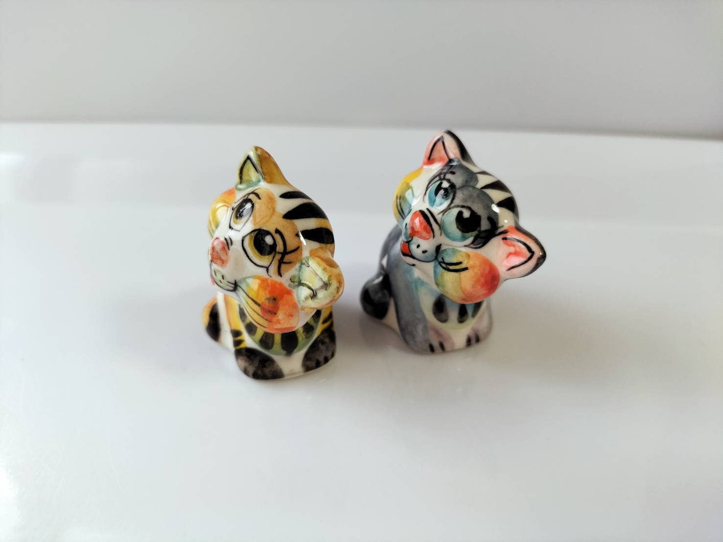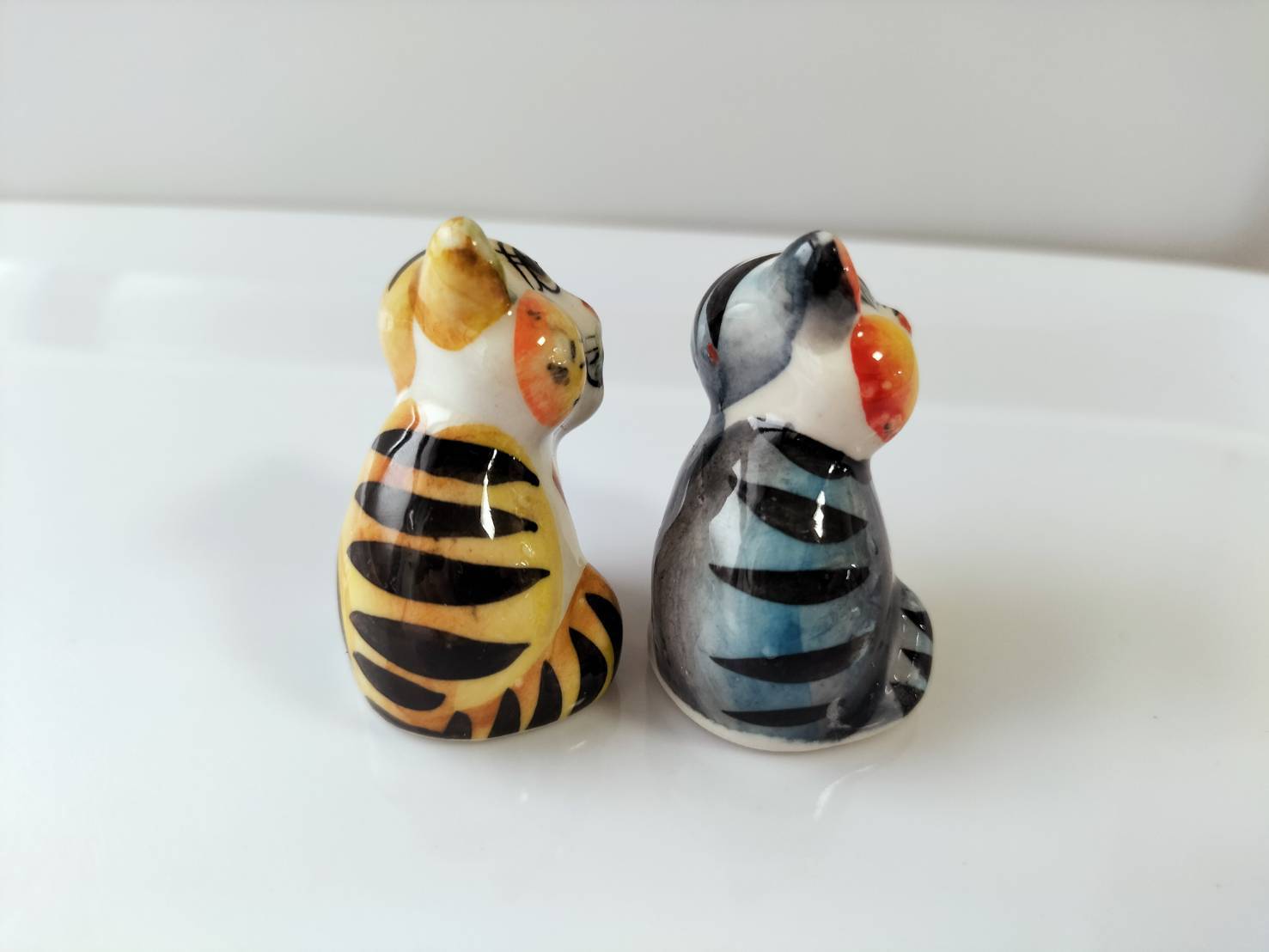 【GZ398】北欧雑貨のインテリア、動物陶器 グジェリ焼2個セット ねこ