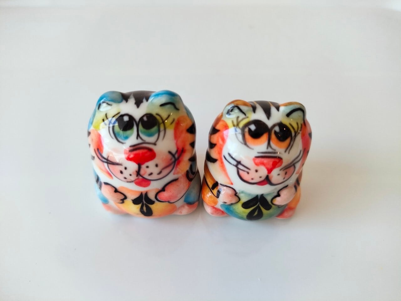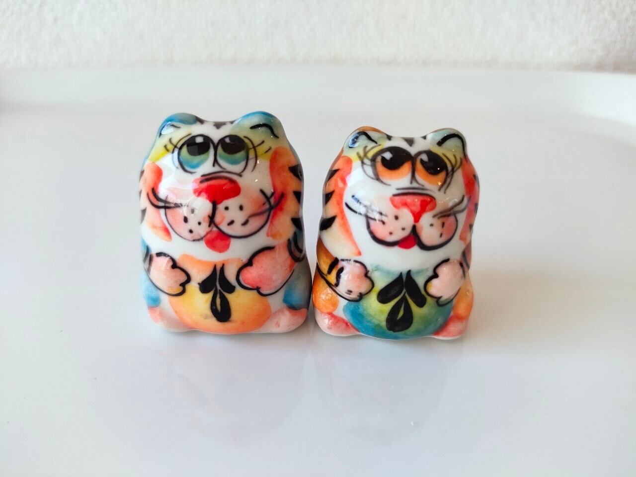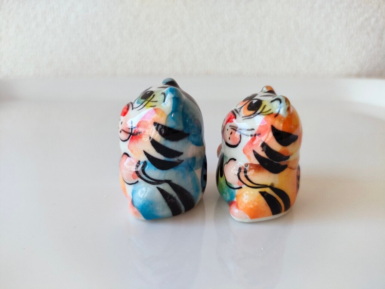 【GZ397】北欧雑貨のインテリア、動物陶器 グジェリ焼2個セット わんぱくねこ