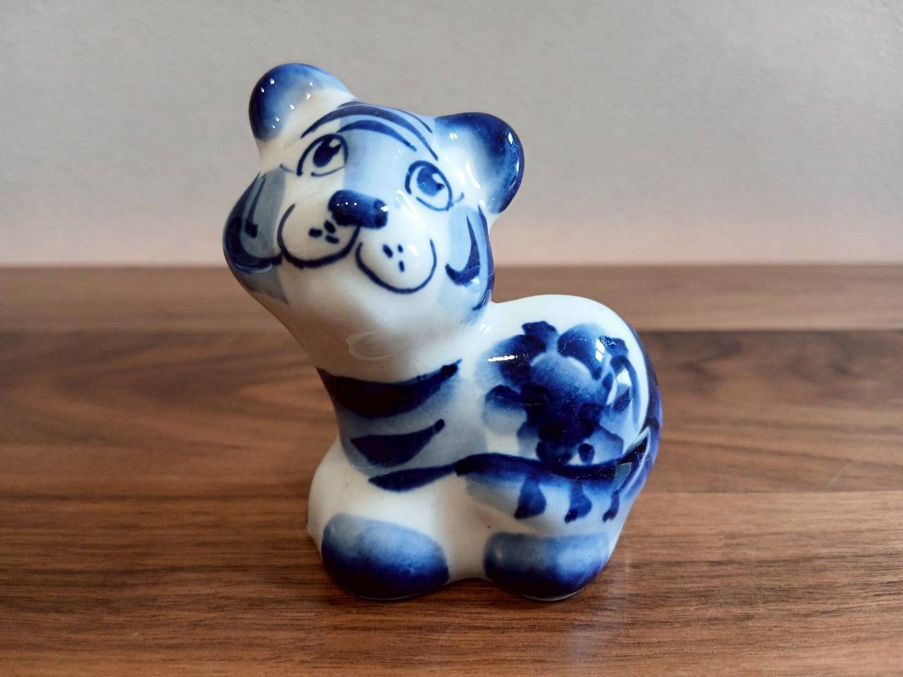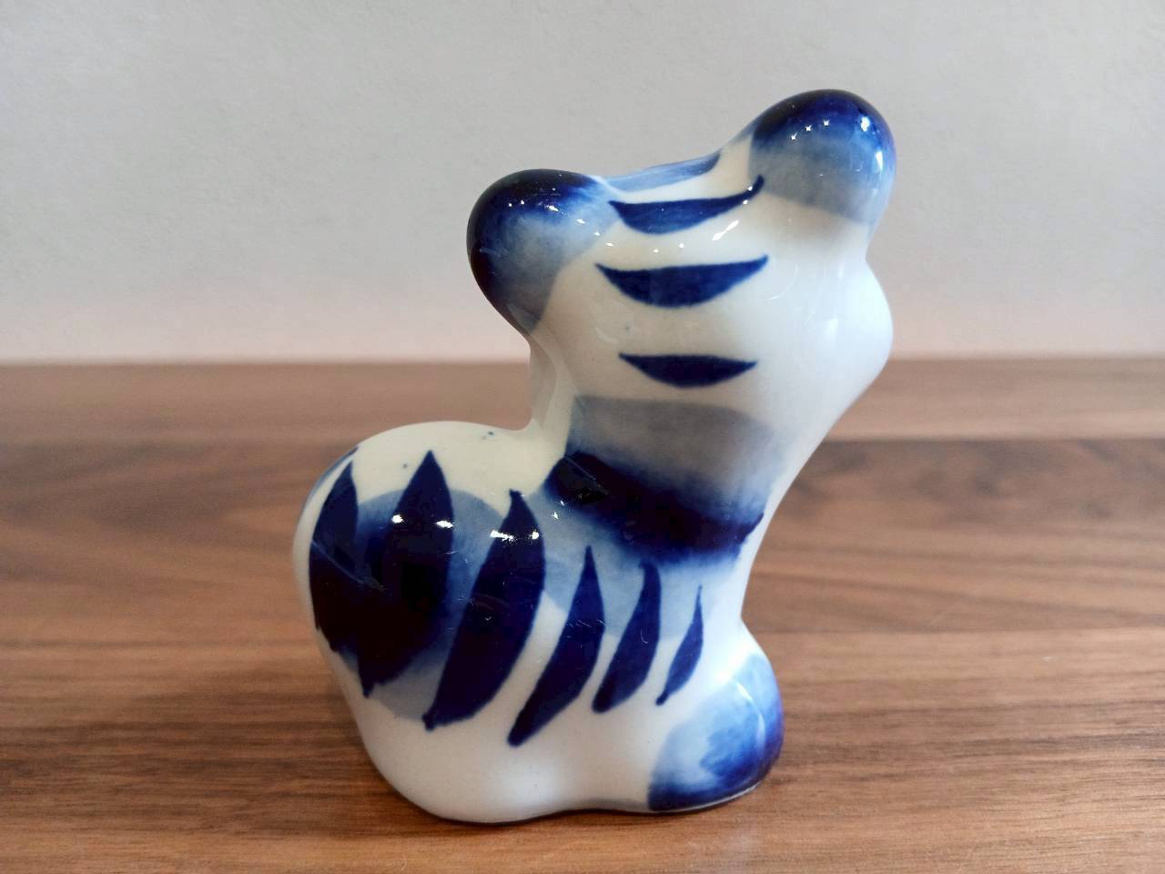 【GZ403】北欧ロシア雑貨 動物陶器 グジェリ焼 とら