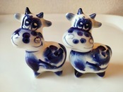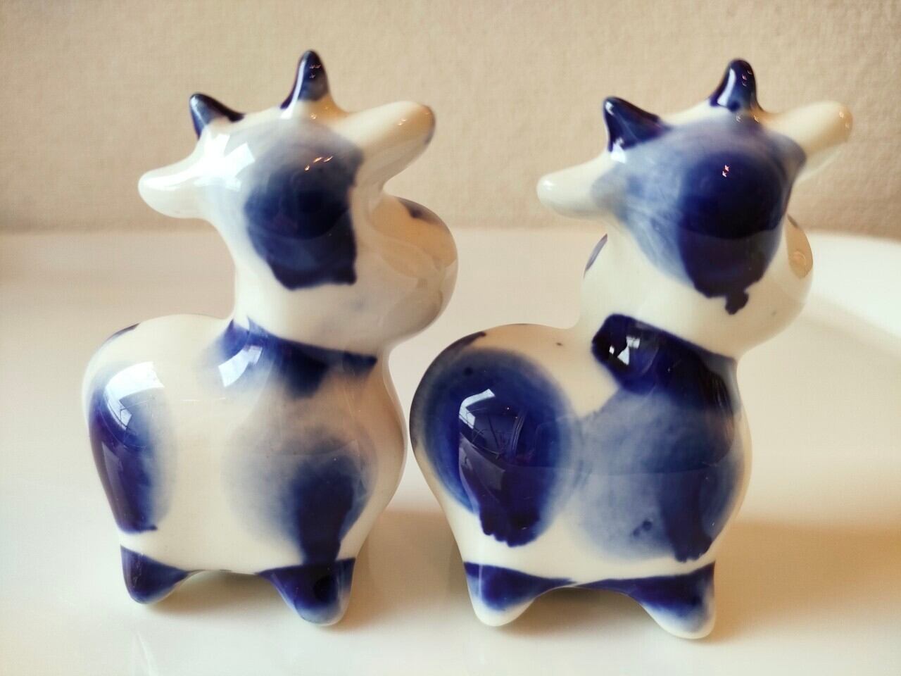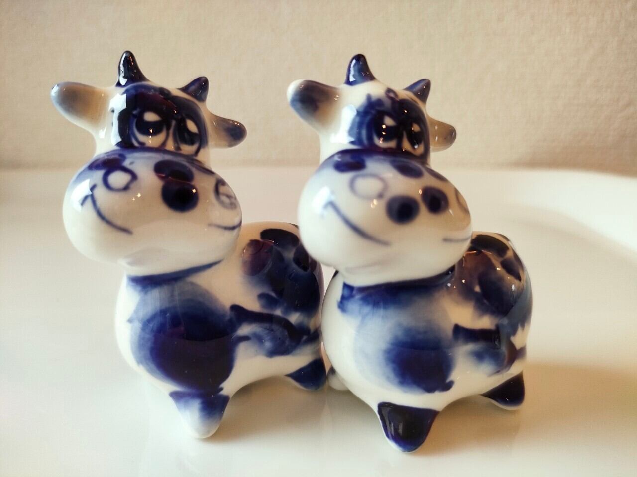 【GZ405】北欧ロシア雑貨 動物陶器 グジェリ焼 【うし】