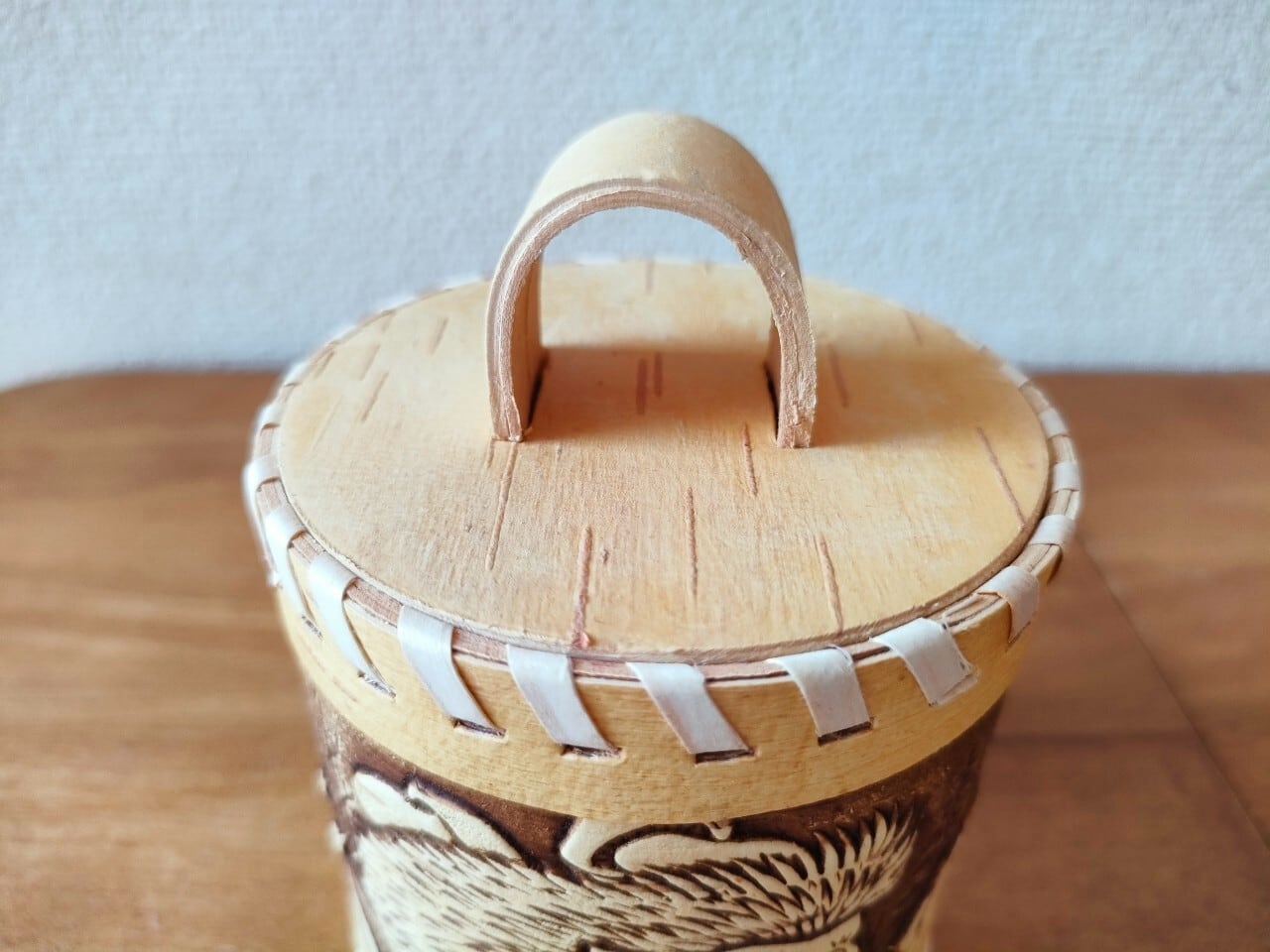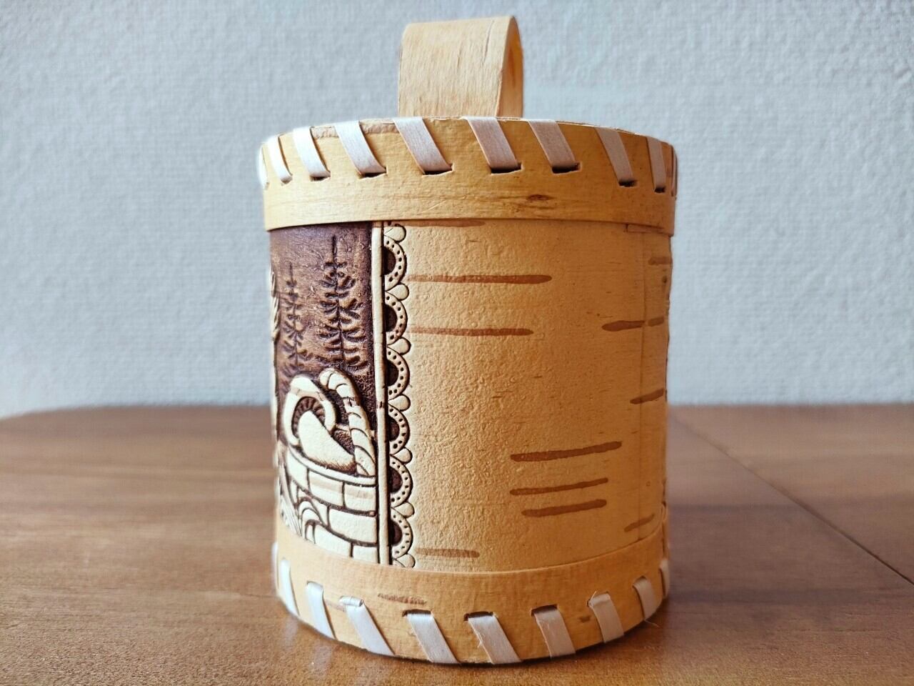 白樺は強い抗菌作用があるとされ、今でもロシアの農村に行くと、パンやキノコ、香辛料、塩砂糖などを入れる置物として活用されています。白樺のほのかな香りがします。