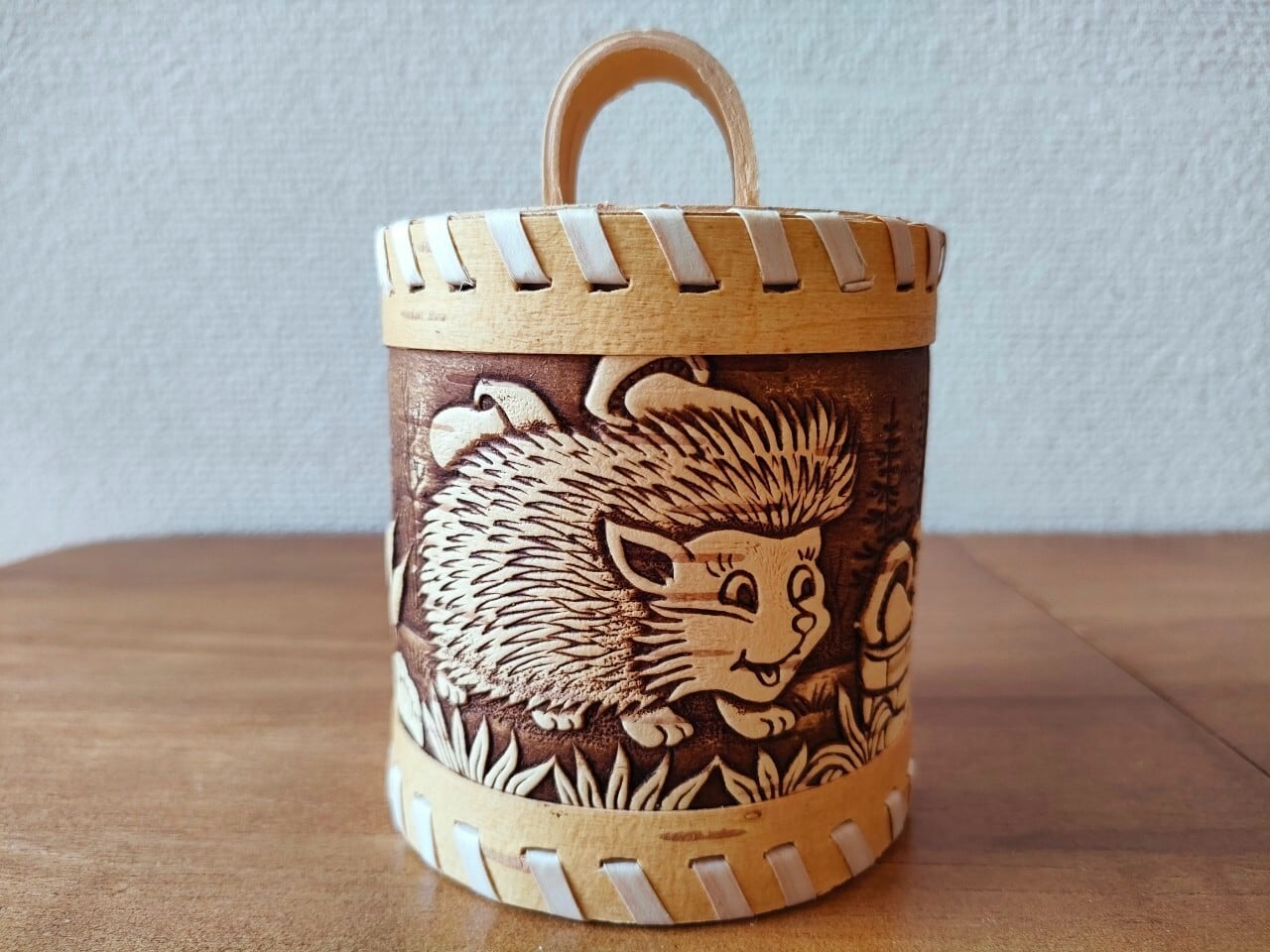 ロシア・北欧の小物入れ、ベレスタです。白樺の真皮で作られている白樺細工です。