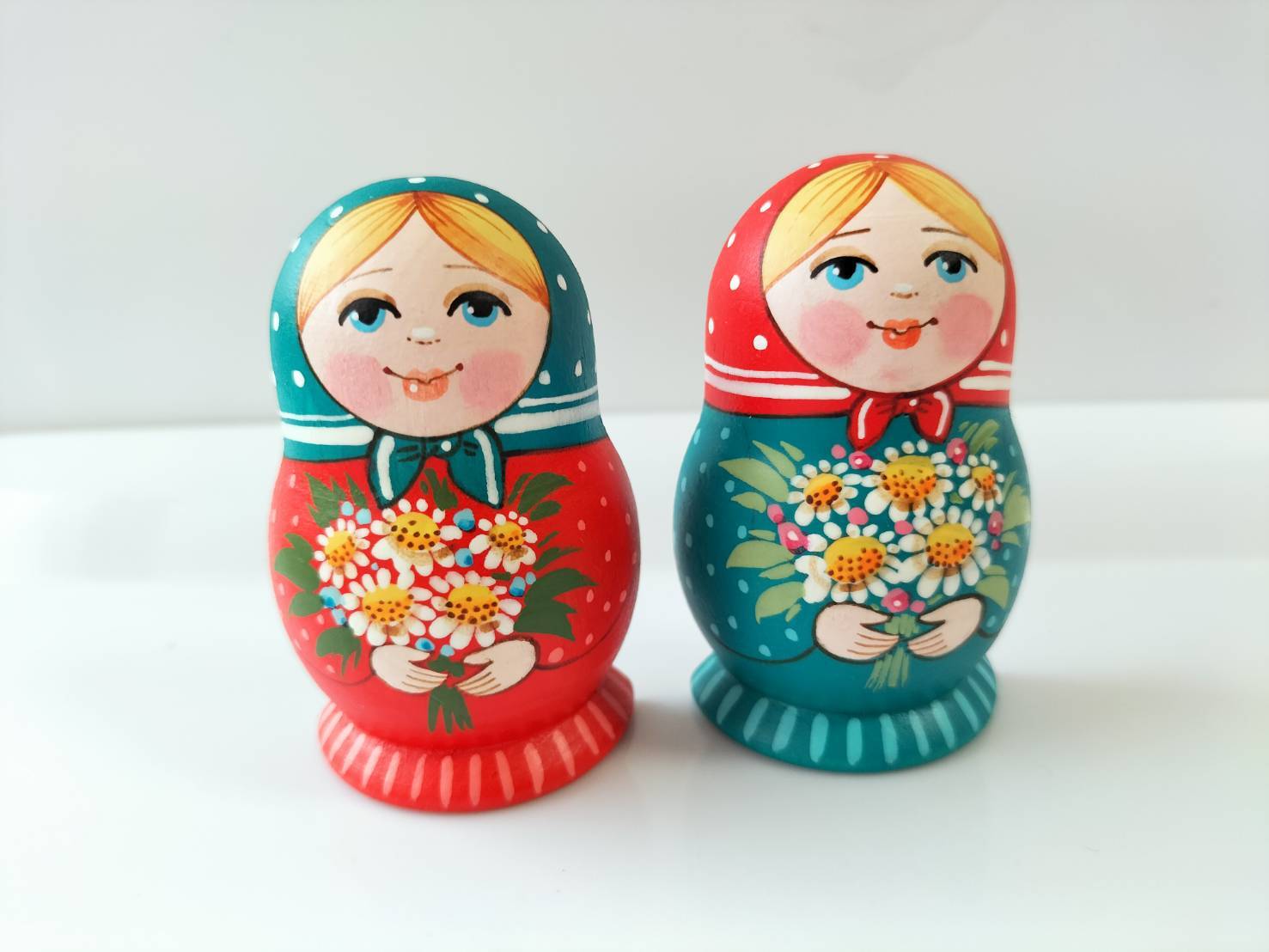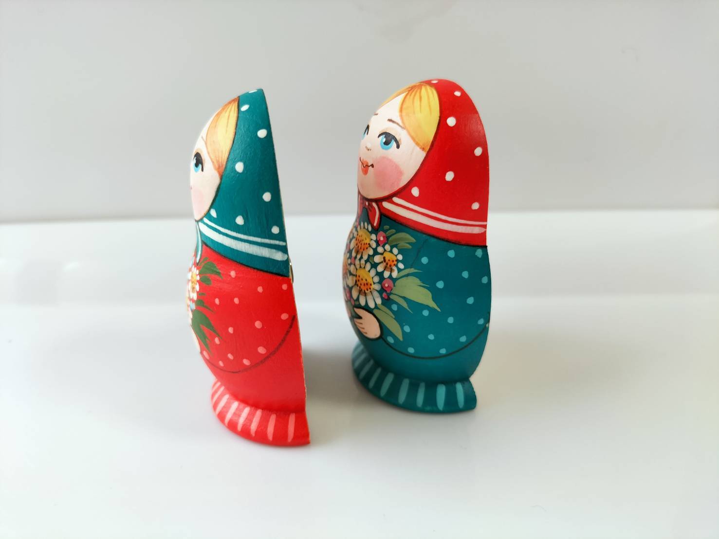 彼女の描くマトリョーシカや起き上がりこぼしは、可愛らしい顔が特徴的です。パステルカラーな色彩は誰もが持つメルヘンチックな淡い童心を思い起こさせます。