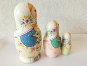 彼女の描くマトリョーシカや起き上がりこぼしは、可愛らしい顔が特徴的です。パステルカラーな色彩は誰もが持つメルヘンチックな淡い童心を思い起こさせます。