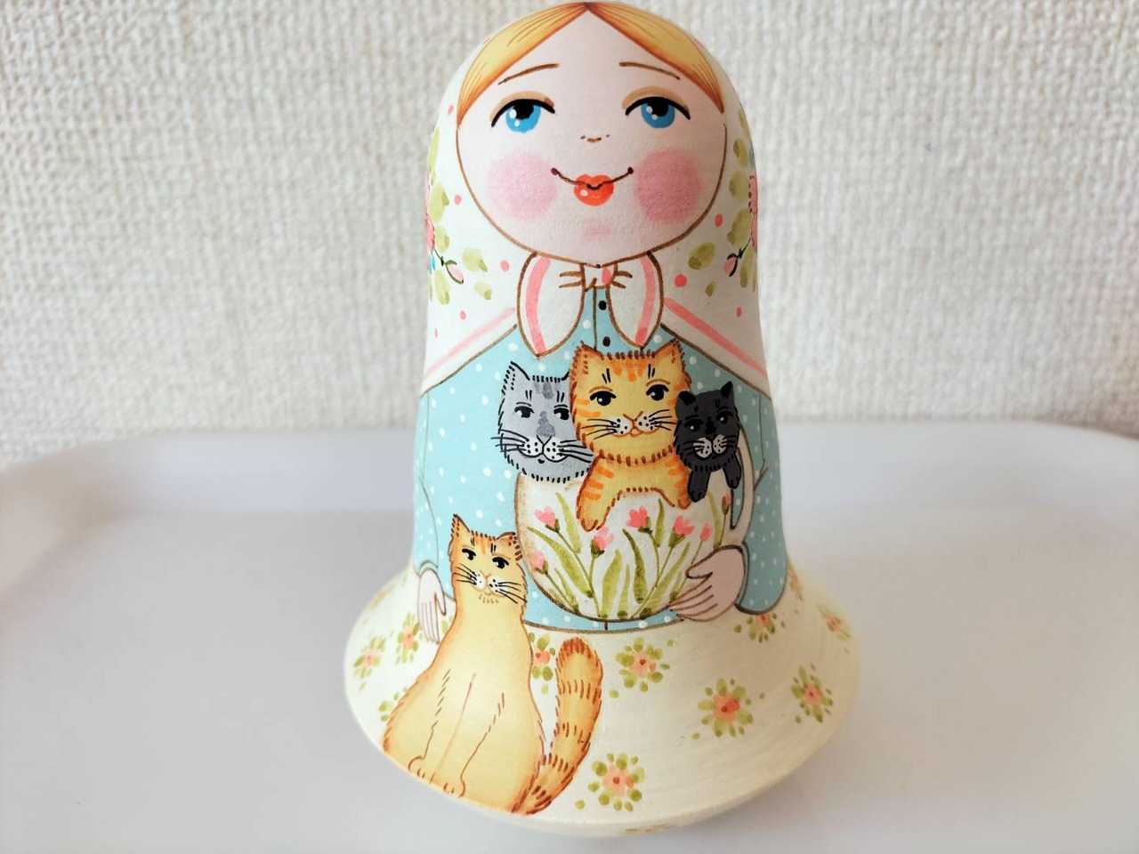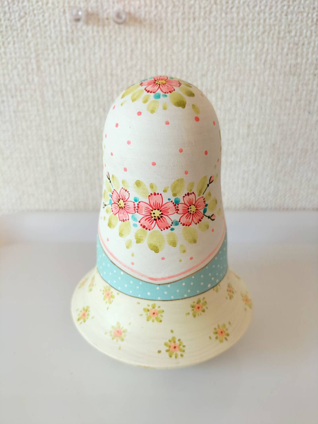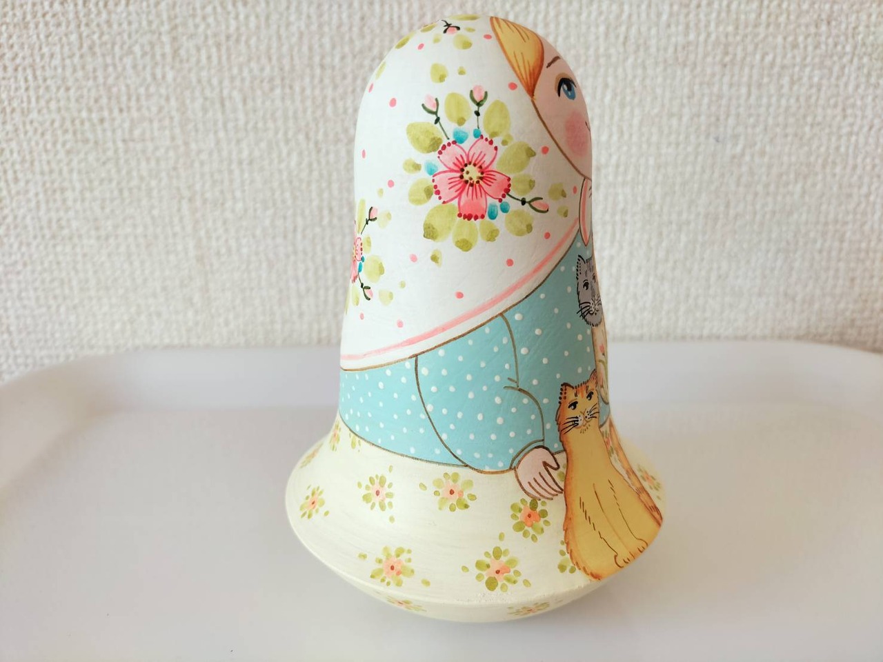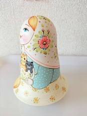 ロシアで有名なエレーナ・イワンツォワさんという作家さんの起き上がりこぼしです。上下左右に揺らすとカランコロンと鈴の音を鳴らして元の位置に立ち戻ります。
