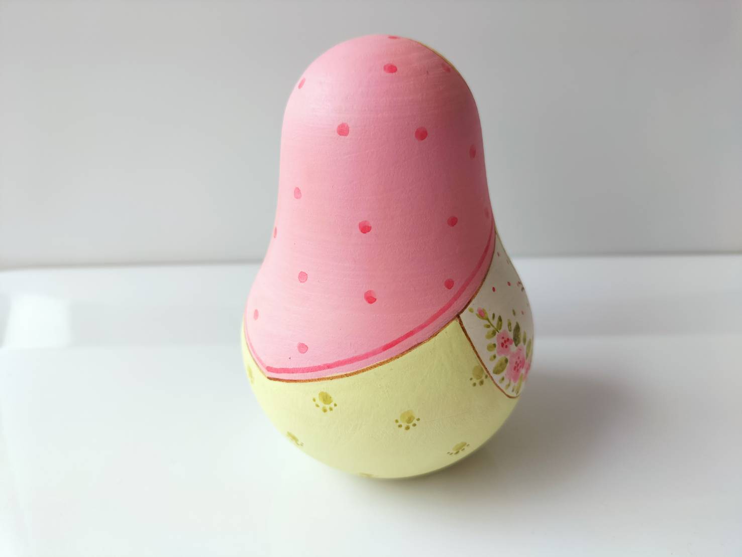 ロシアで有名なエレーナ・イワンツォワさんという作家さんの起き上がりこぼしです。上下左右に揺らすとカランコロンと鈴の音を鳴らして元の位置に立ち戻ります。