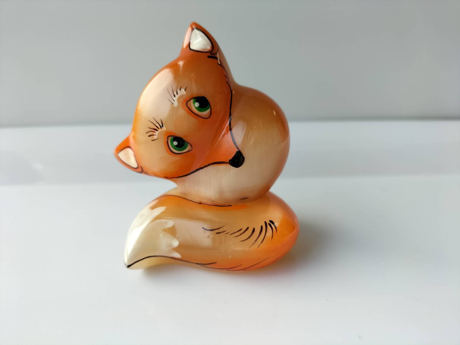 【CEL657】北欧ロシア雑貨天然石・セレナイト 水晶/ 文鎮 きつね