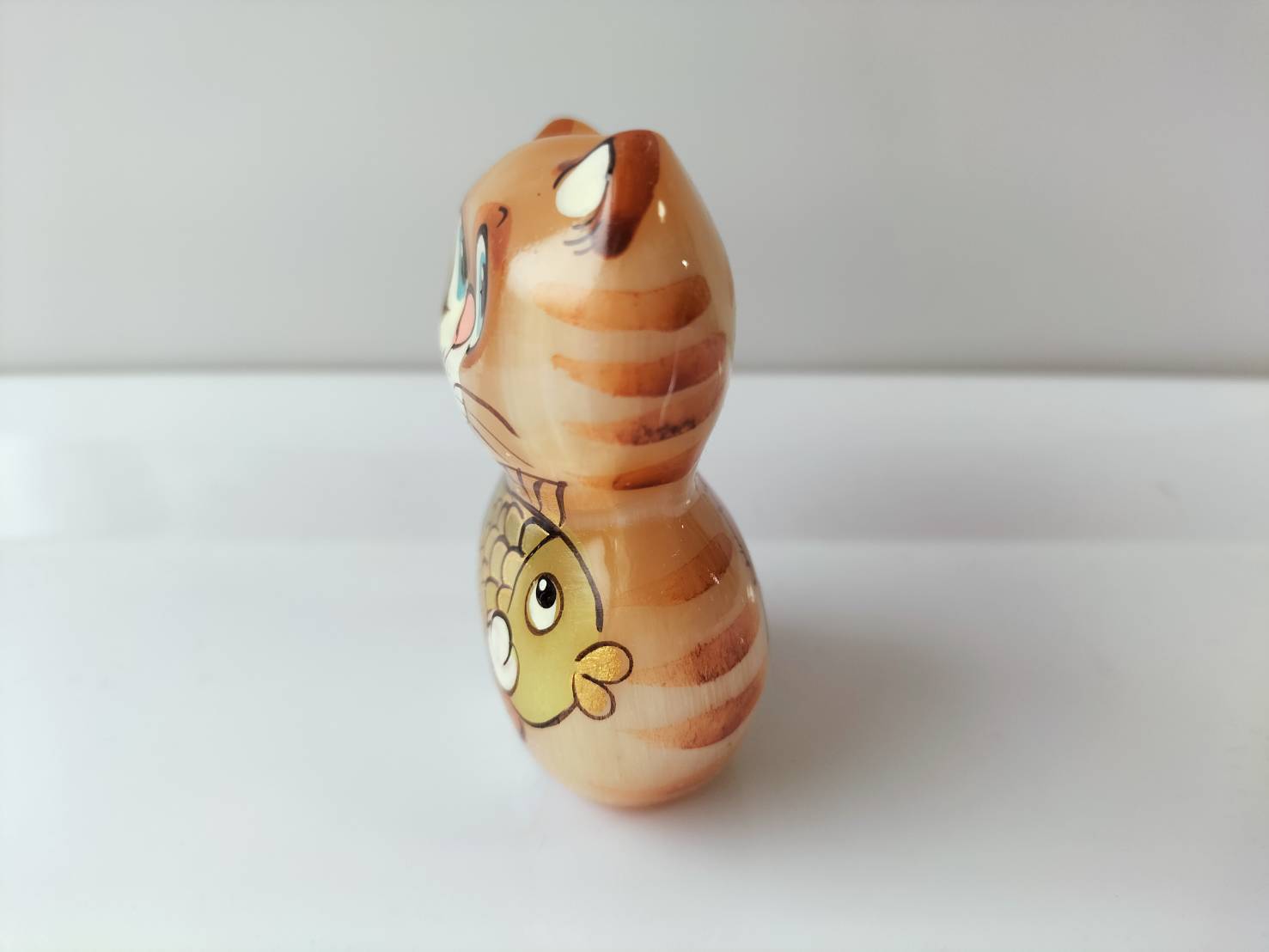 【CEL674】北欧ロシア雑貨天然石・セレナイト 水晶/ 文鎮・重石 さかなを得たねこ