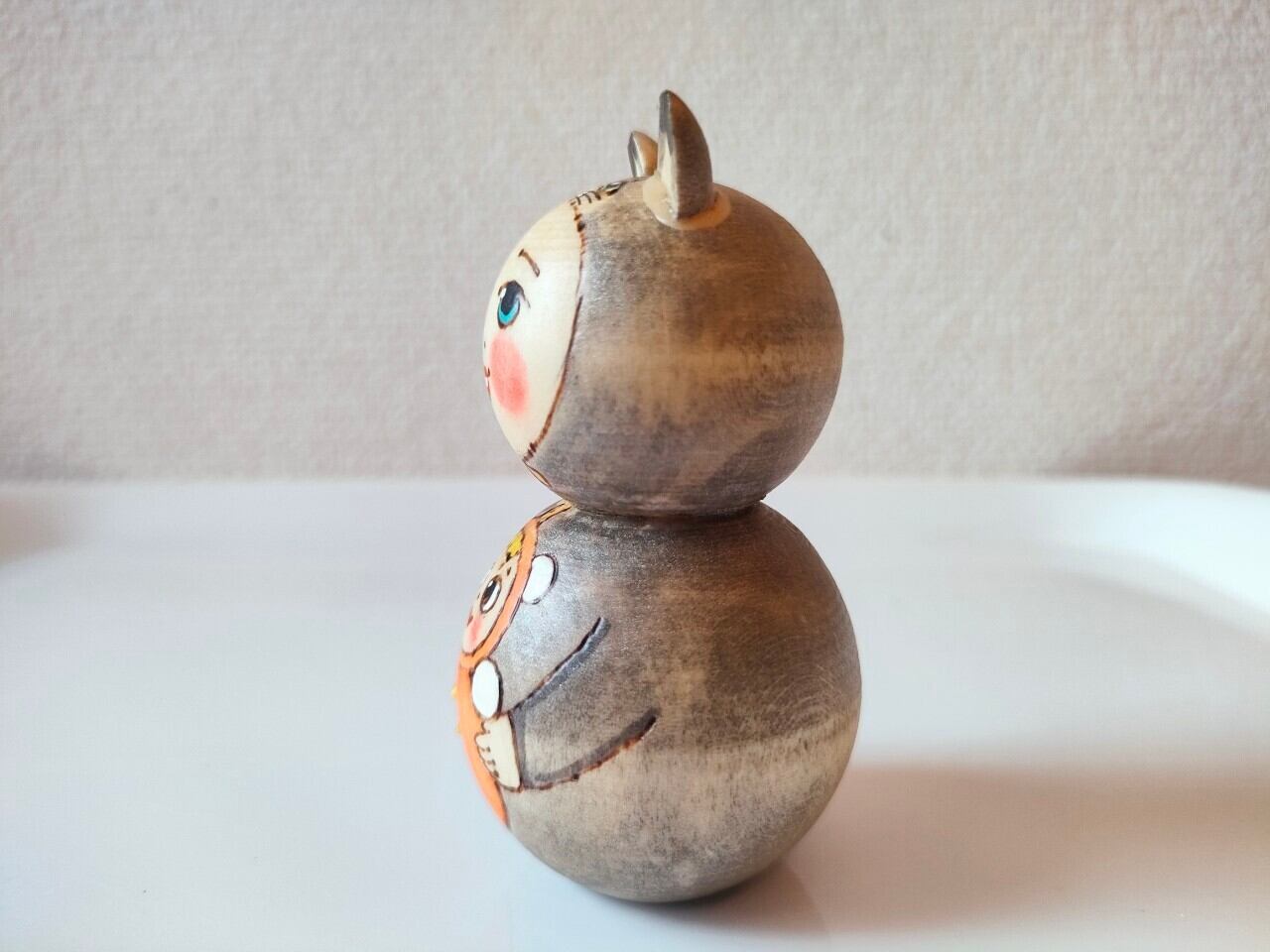 【LYH269】北欧ロシア雑貨のインテリア リューバ作 木製人形 起き上がりこぼしを持つ男の子