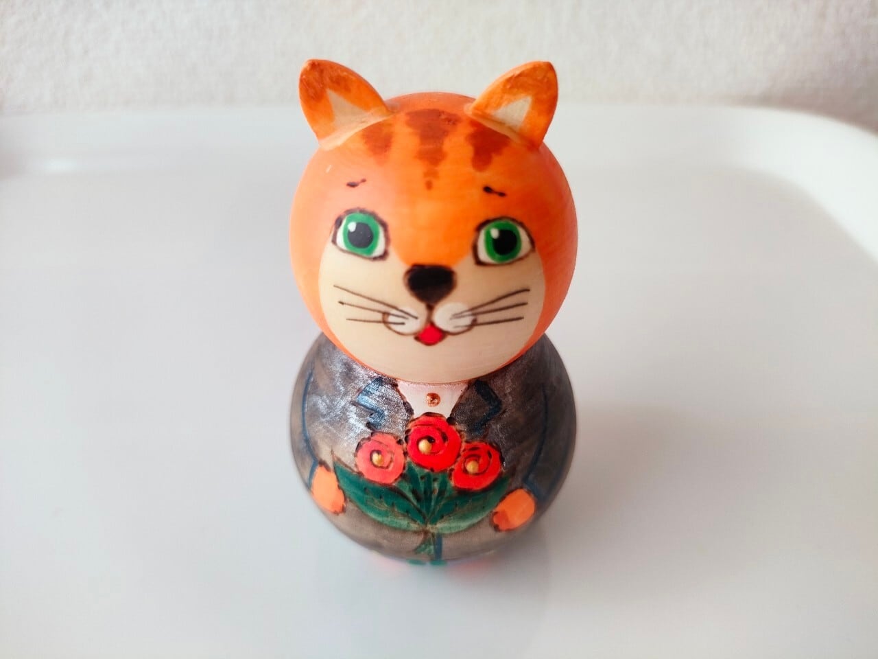 【LYH272】北欧ロシア雑貨 リューバ作 木製人形 紳士なねこ