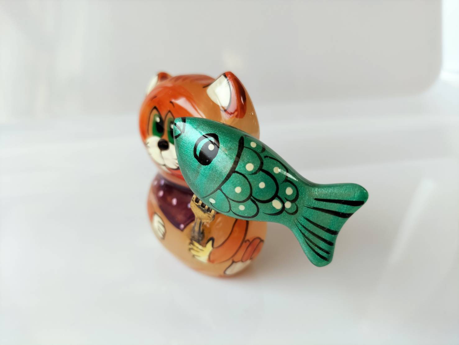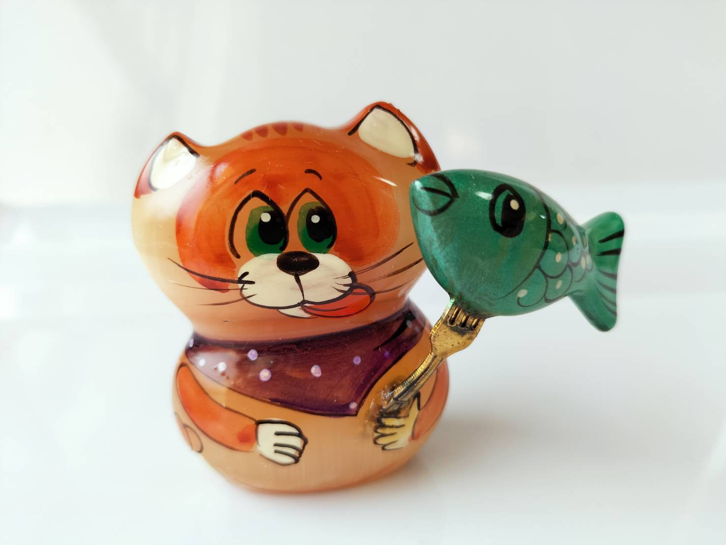 【CEL688】北欧ロシア雑貨天然石・セレナイト 水晶/ 文鎮・重石 魚を得たねこ