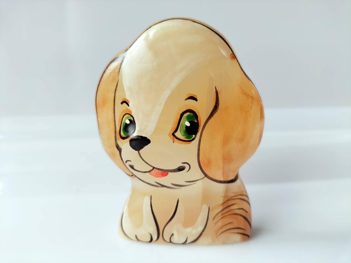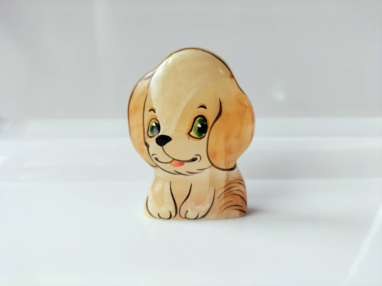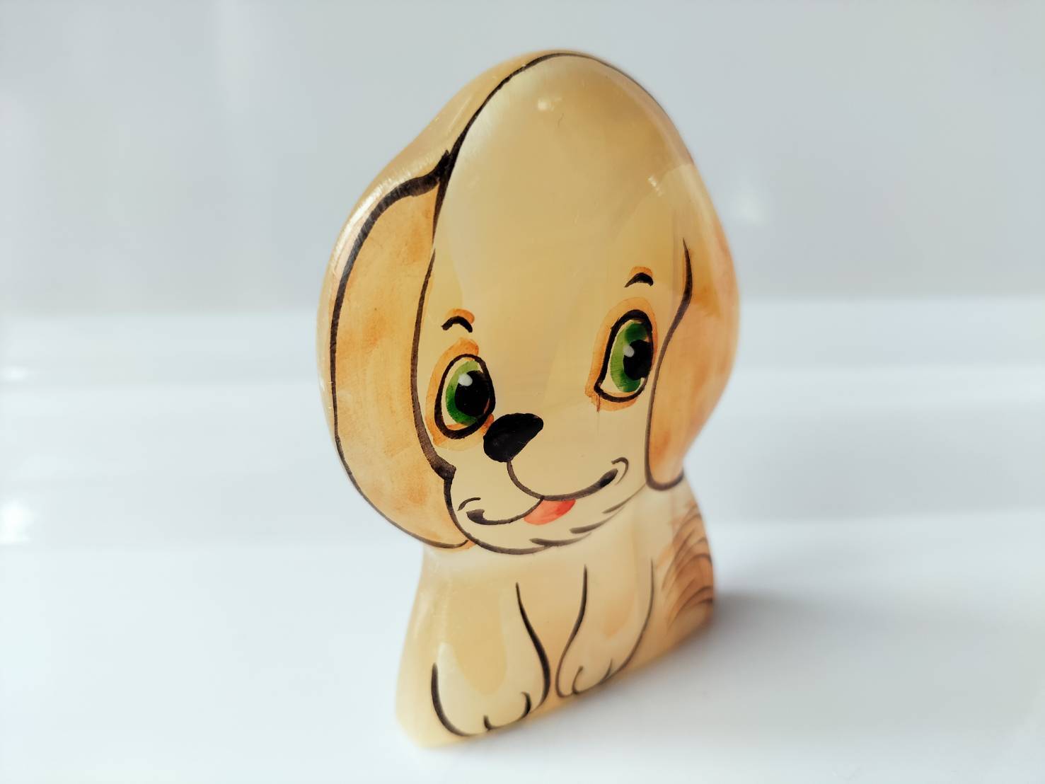 【CEL694】北欧ロシア雑貨天然石・セレナイト 水晶/ 文鎮・重石 バセットハウンド いぬ