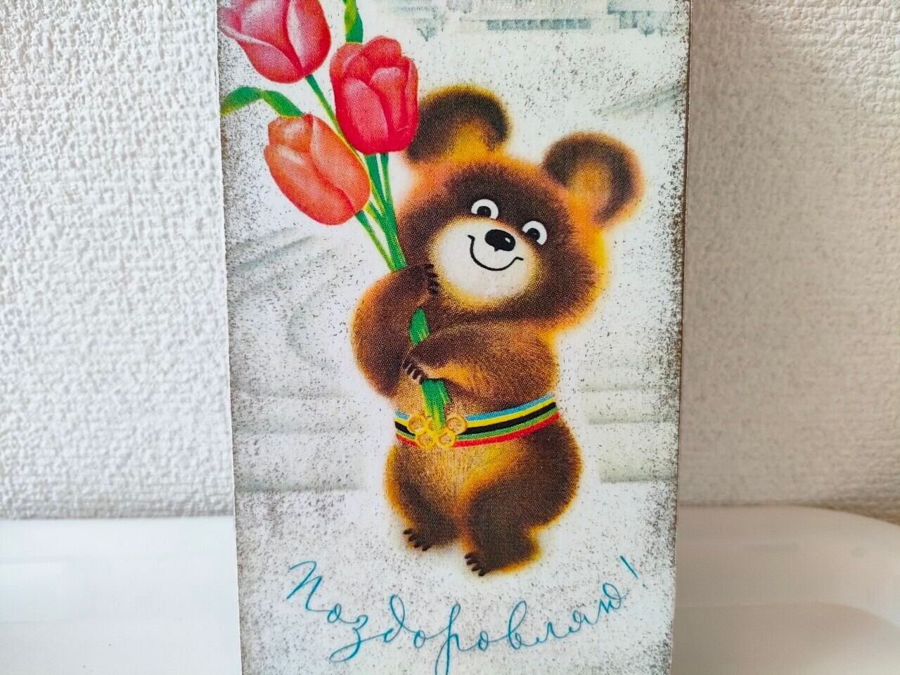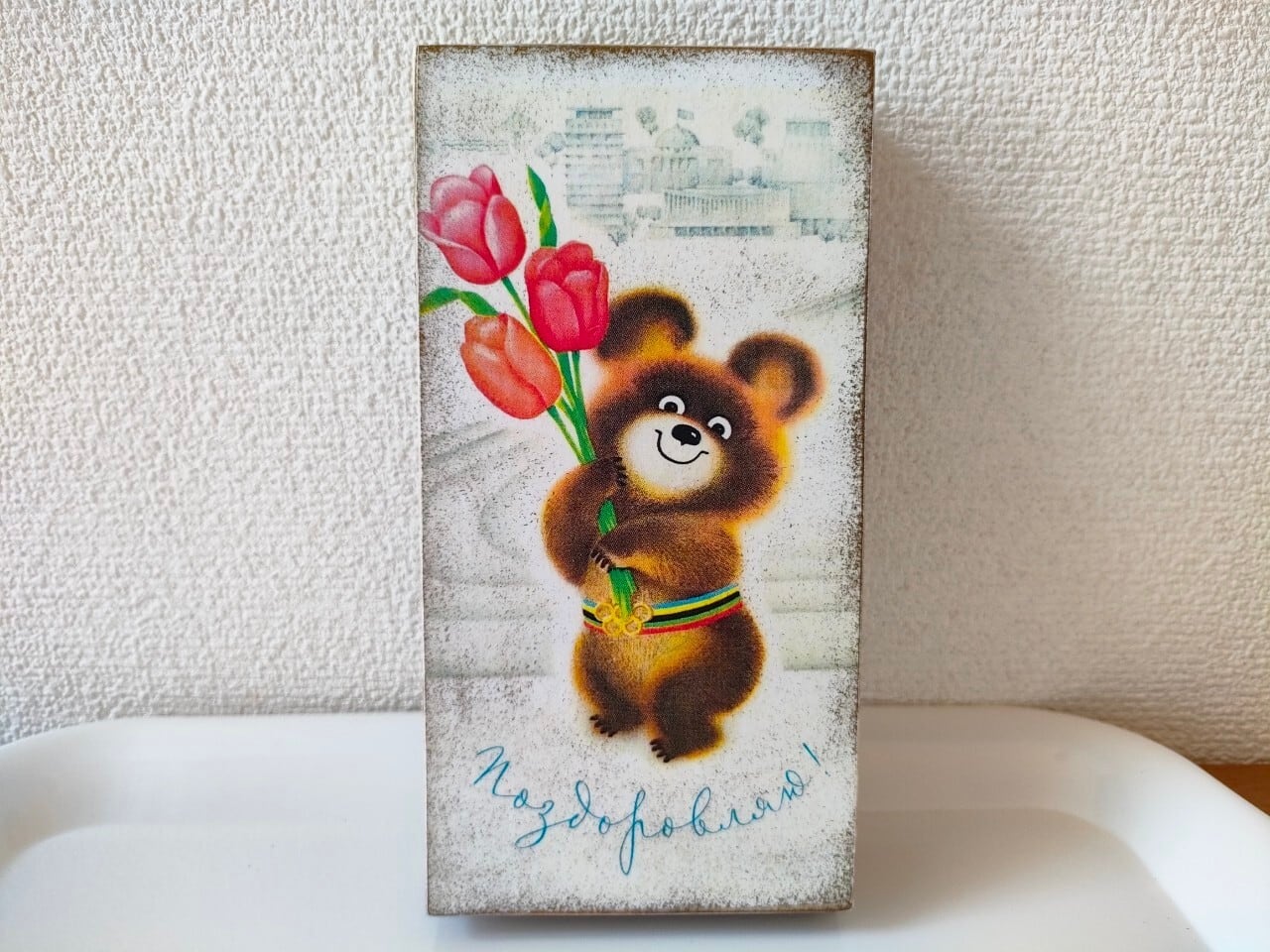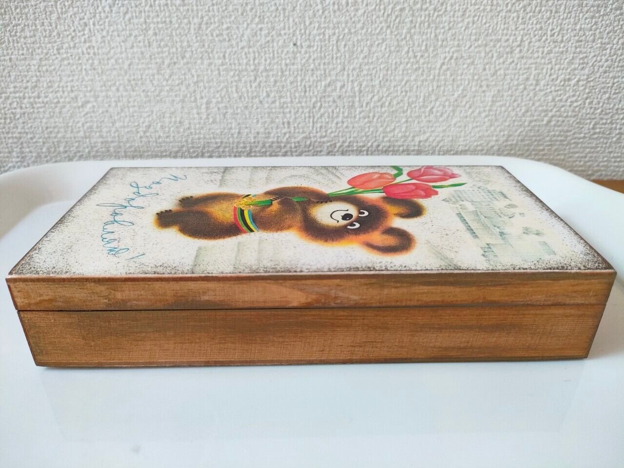 【DP042】北欧雑貨のインテリア ソ連はがきプリント木箱 モスクワ五輪ミーシャ