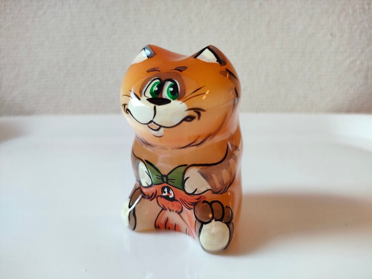 【CEL699】北欧ロシア雑貨天然石・セレナイト 水晶/ 文鎮・重石 ねこ