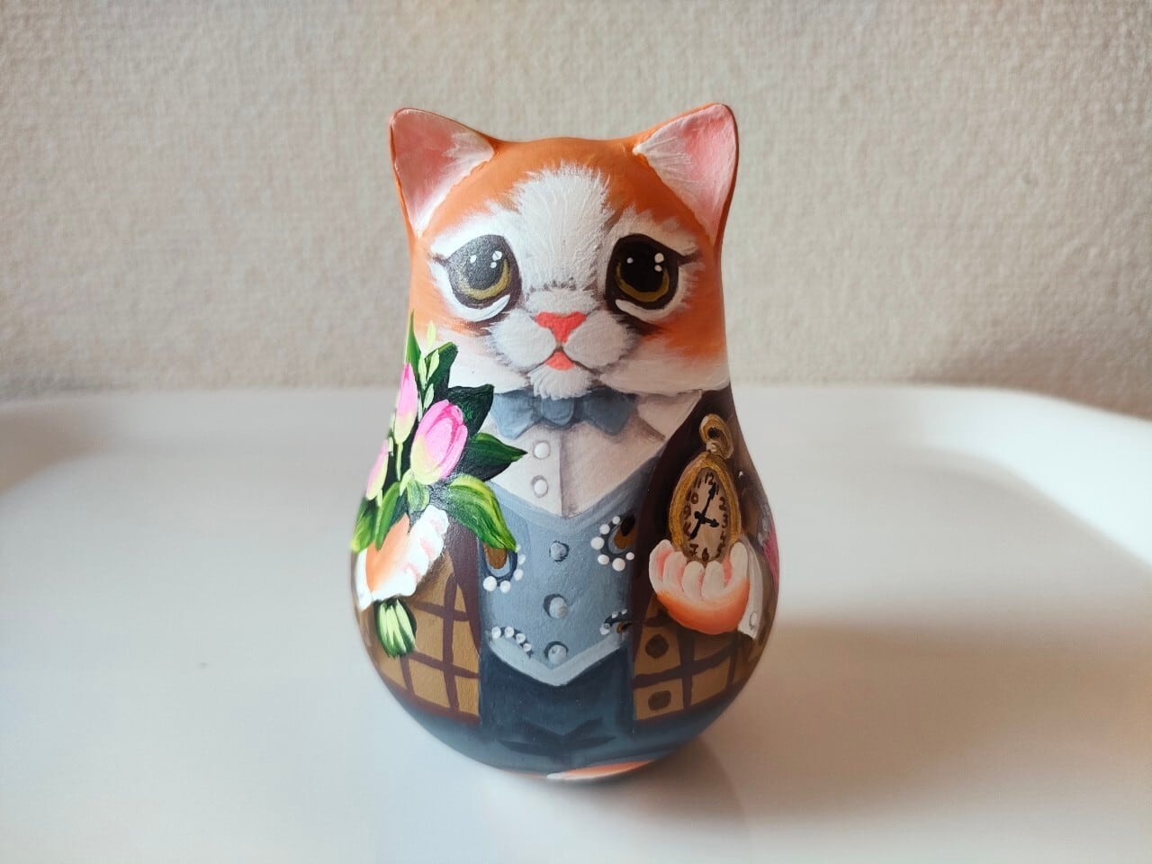 ロシアで有名なスヴェトラーナさんという作家の中サイズの起き上がりこぼしです。前後左右に転がすと、カランコロンと音が出て、元の位置に戻ります。