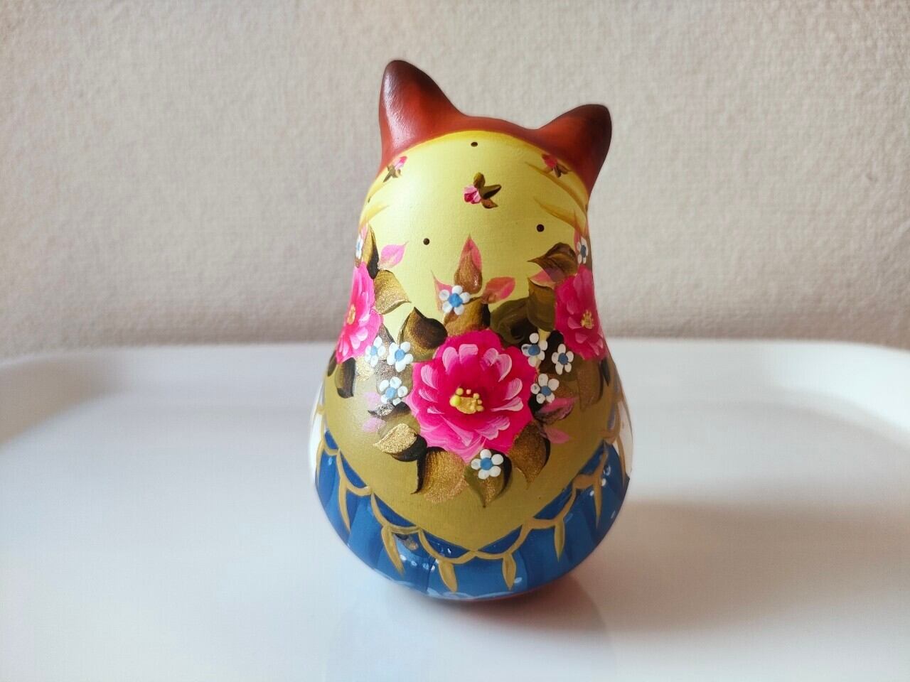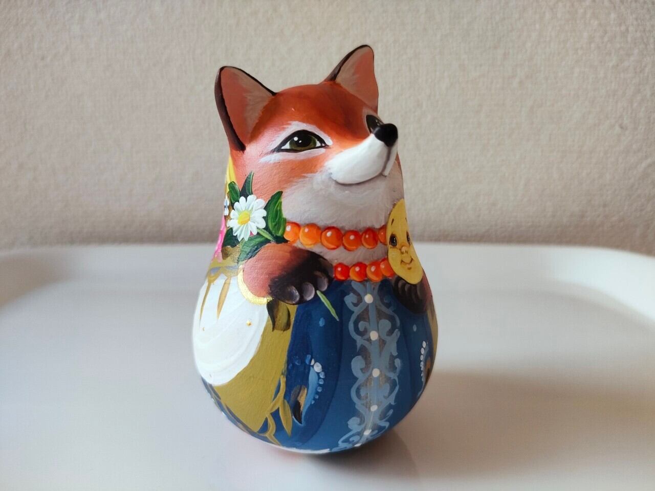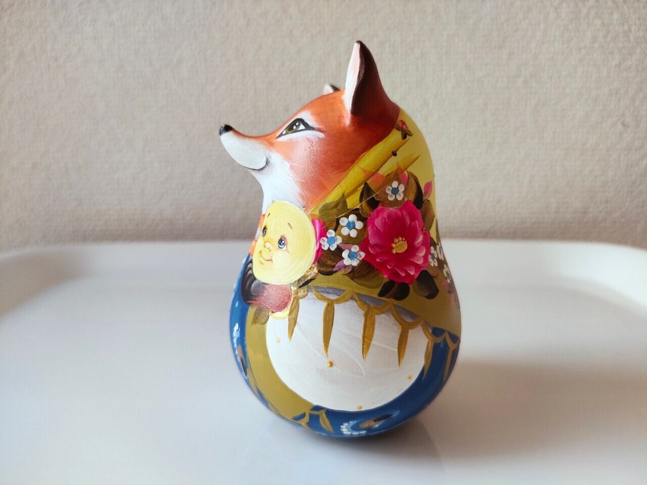 ロシアで有名なスヴェトラーナさんという作家の中サイズの起き上がりこぼしです。前後左右に転がすと、カランコロンと音が出て、元の位置に戻ります。
