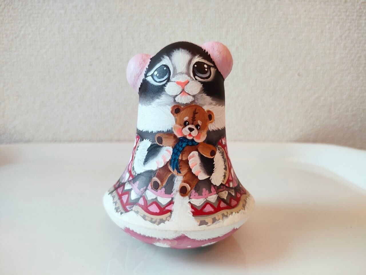 ロシアで有名なスヴェトラーナさんという作家の中サイズの起き上がりこぼしです。前後左右に転がすと、カランコロンと音が出て、元の位置に戻ります。