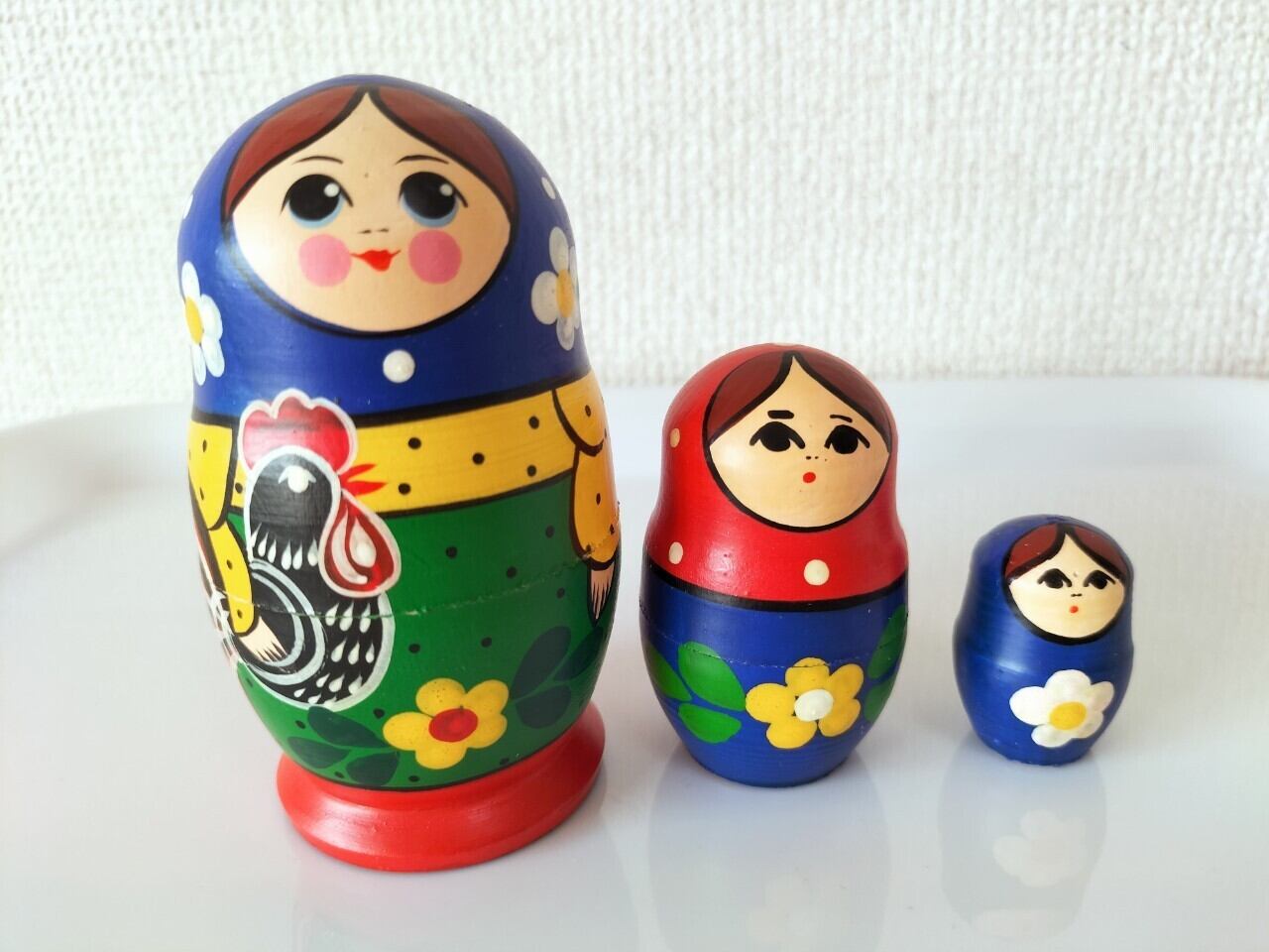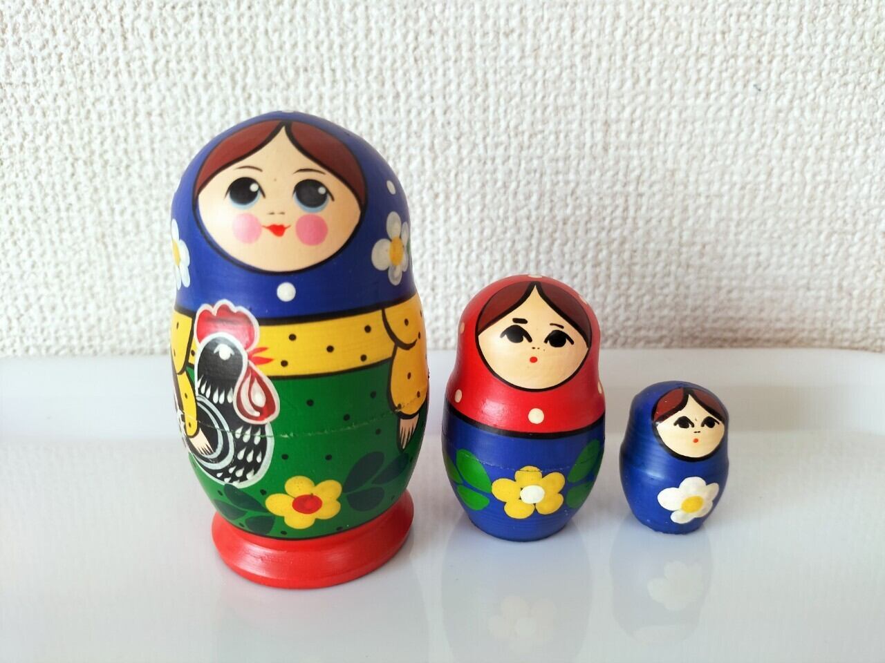 ロシアの可愛いマトリョーシカです。ロシア伝統のビタミンカラフルな原色系マトリョーシカです。