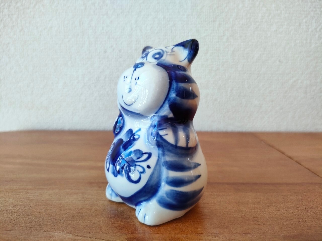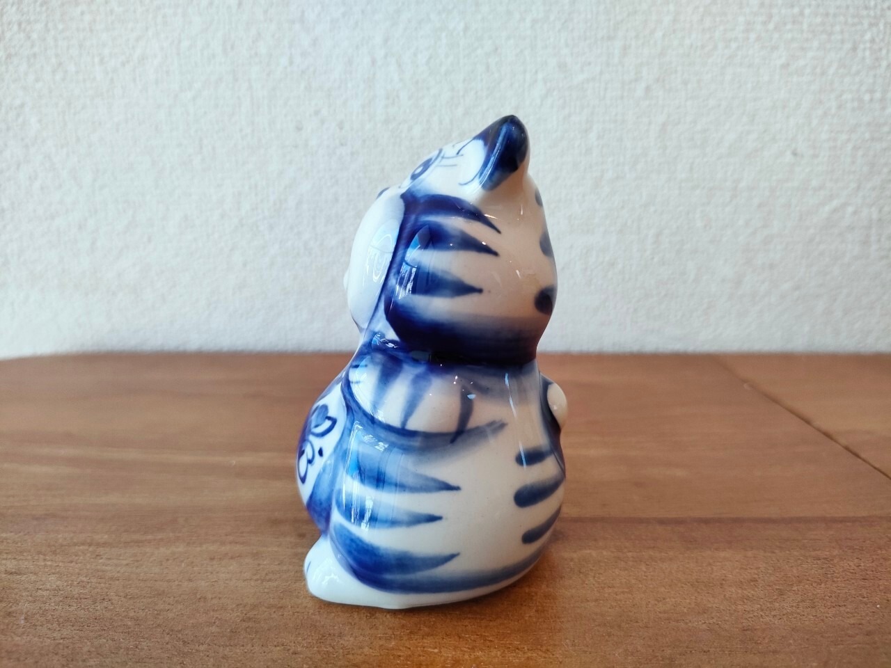 【GZ138】北欧ロシア雑貨 動物陶器 グジェリ焼 おとぼけねこ