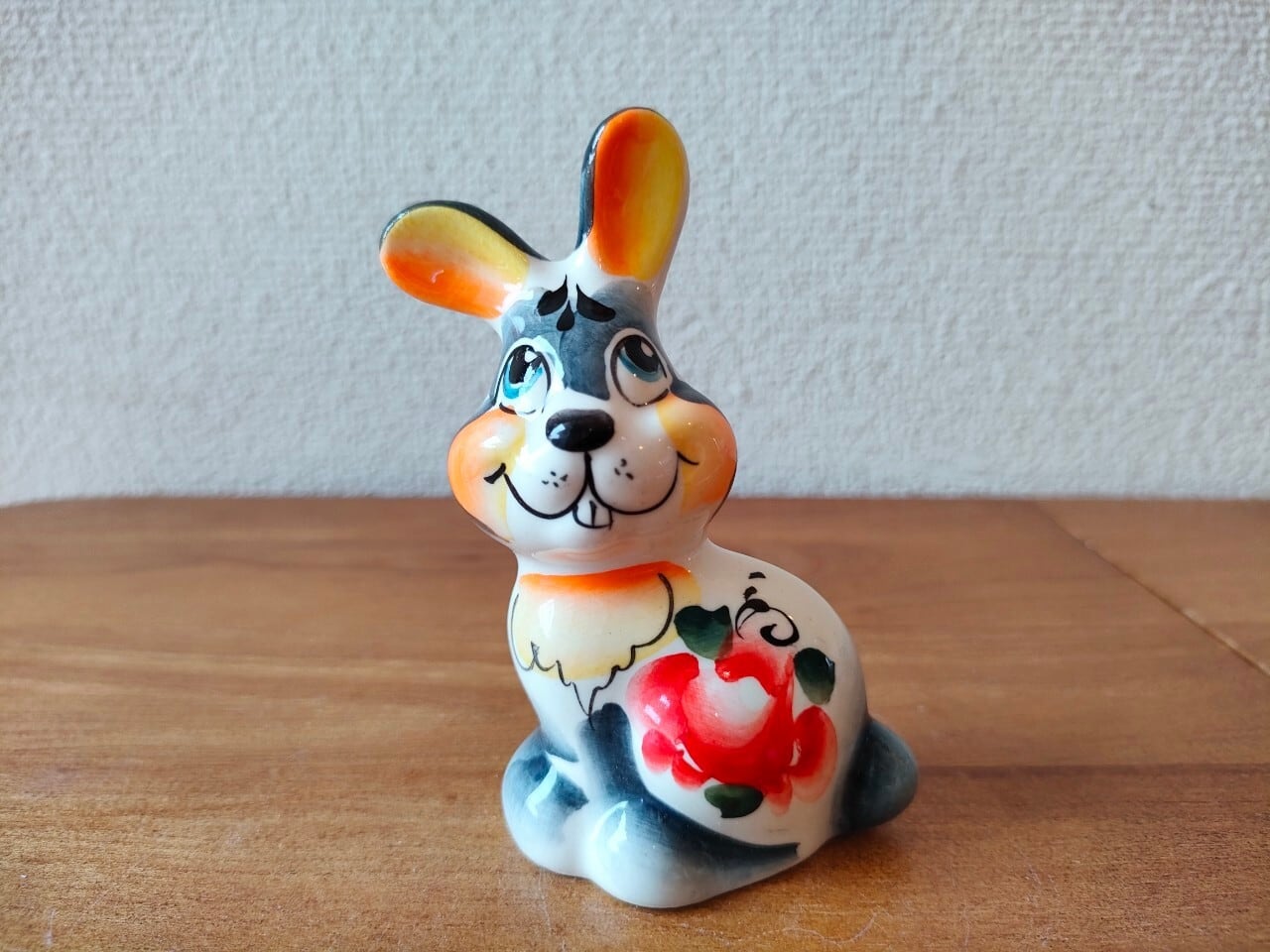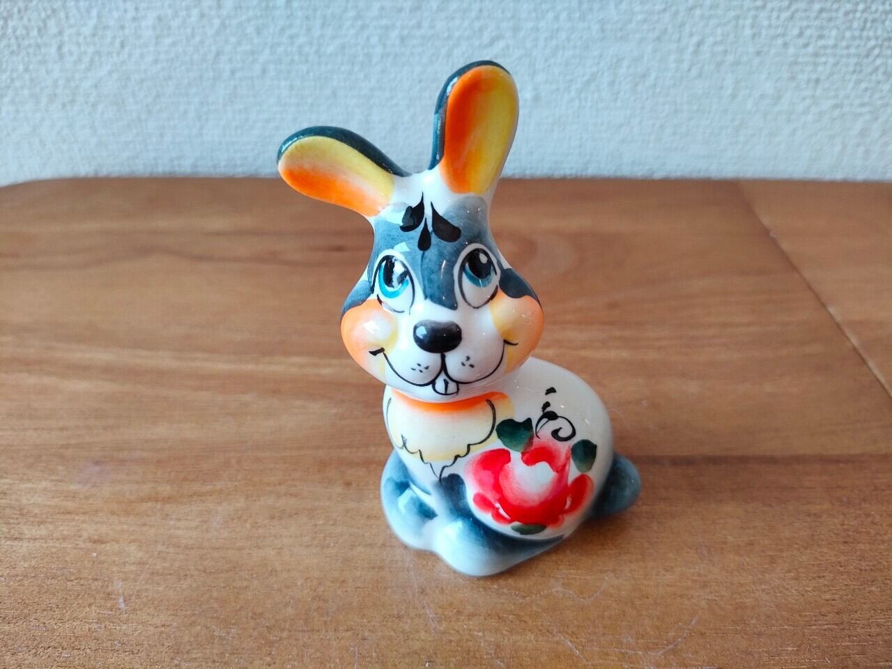 【GZ282】北欧ロシア雑貨 動物陶器 グジェリ焼 うさぎ