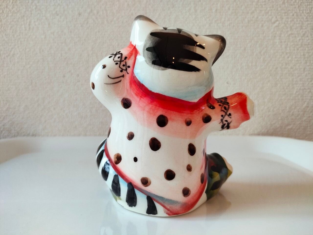 【GZ443】北欧ロシア雑貨 動物陶器 グジェリ焼 踊る猫