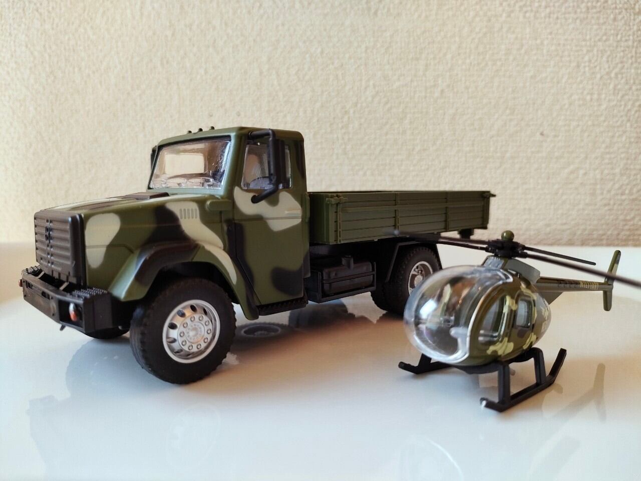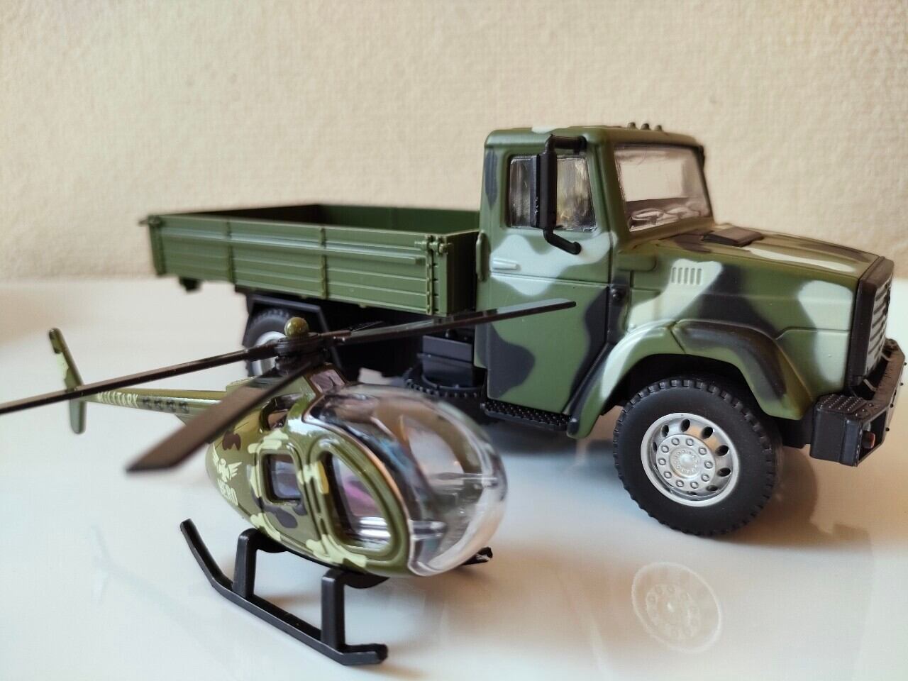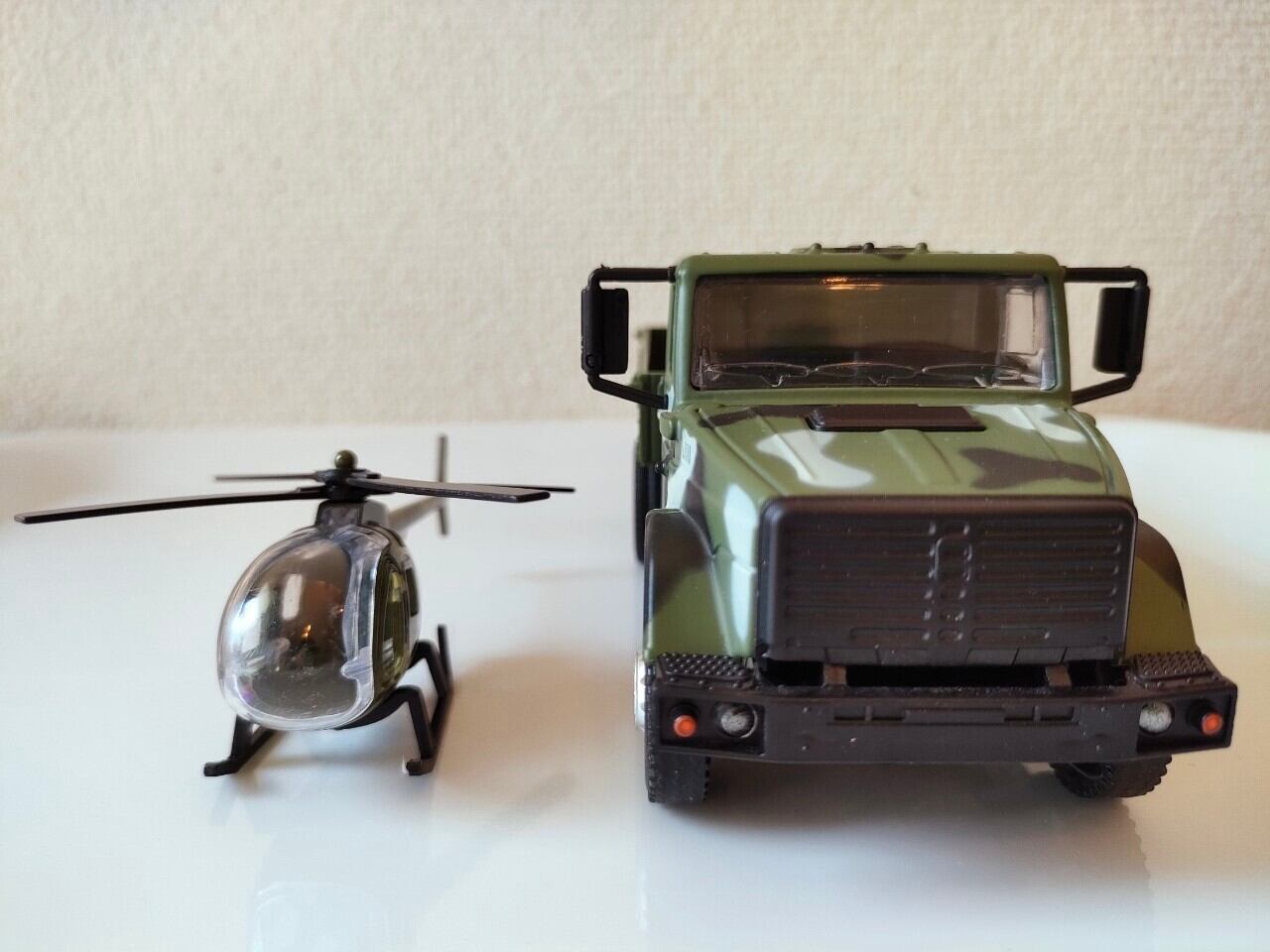 【MAS129】ソビエト、ロシアのミニカー・ジオラマ ZIL 軍用車両(大) ヘリコプター付き