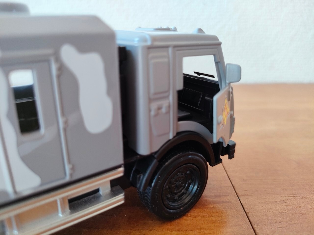 商品箱には、ミニカーが光や音を出す機能があることを示すマークがついていますが、実際にはそういった機能は最初から壊れている、または動作しないことが多いです。ただし、ドアの一部は開閉する仕組みとなっています。