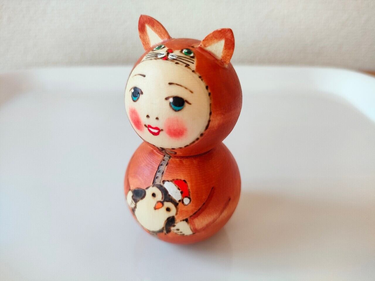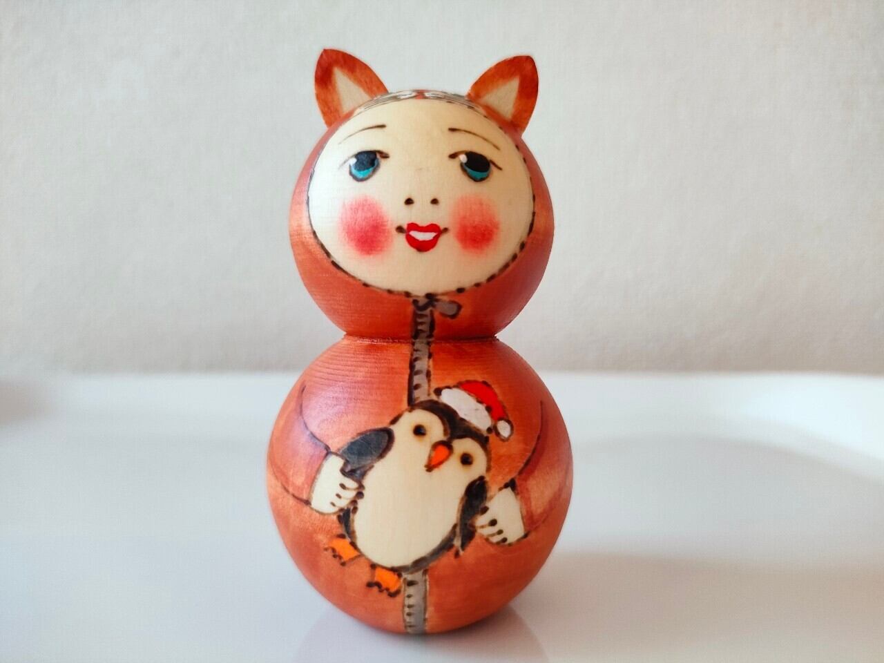 【LYH289】北欧ロシア雑貨 リューバ作 木製人形 ペンギン