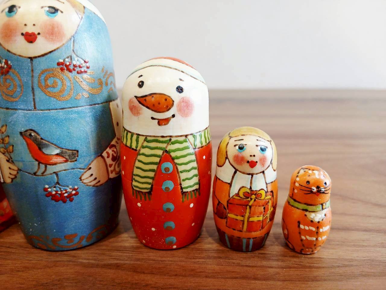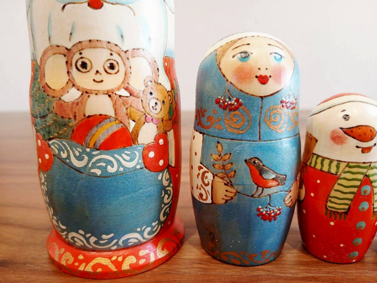 【LYH292】北欧雑貨のインテリア マトリョーシカ リューバ作 マロースおじさんとチェブラーシカ