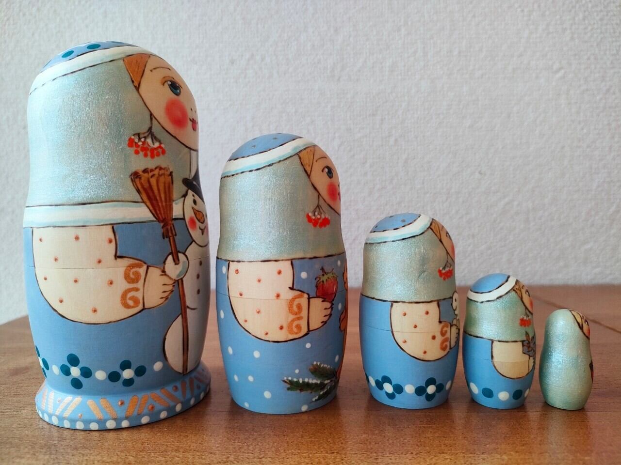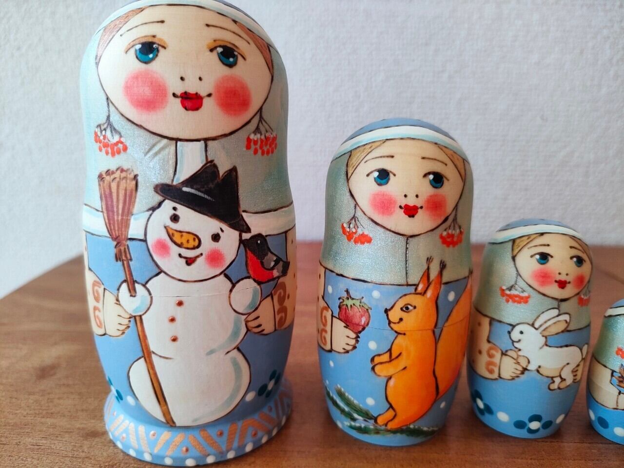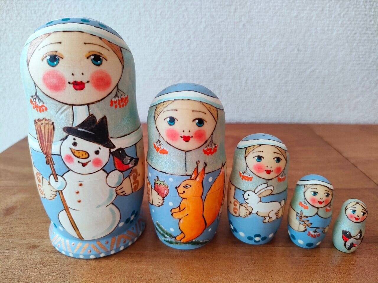 【LYH293】北欧雑貨のインテリア マトリョーシカ リューバ作 雪だるまと仲間たち
