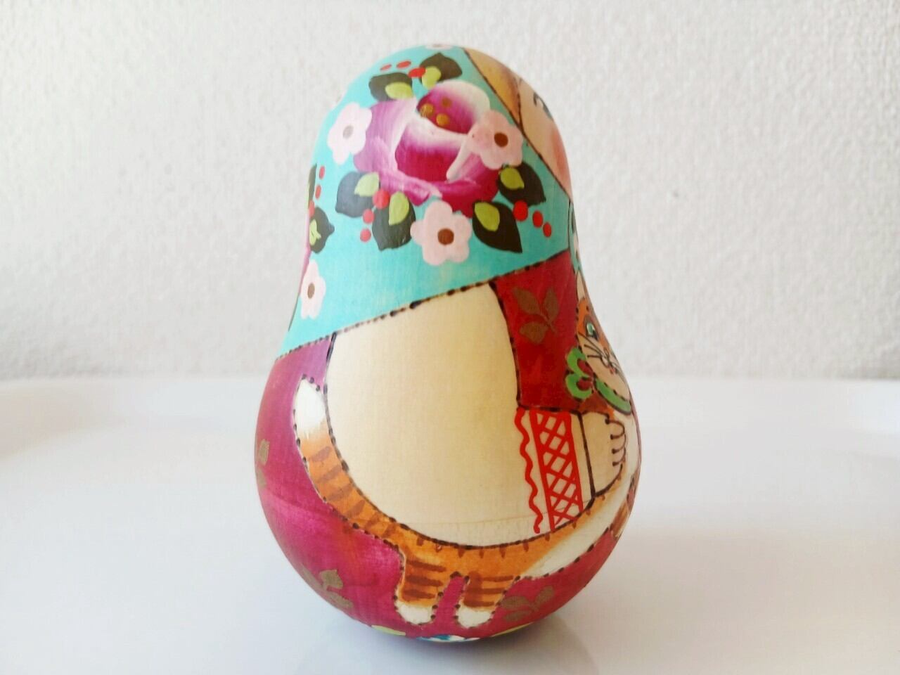 【LYH298】北欧ロシア雑貨 起き上がりこぼし(中) リューバ作 ネコとネズミ