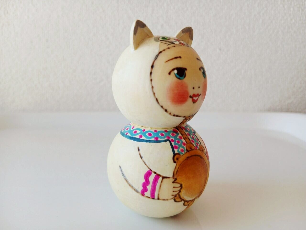 ※訳あり無料プレゼント企画【LYH274】北欧ロシア雑貨 リューバ作 木製人形 タンバリン